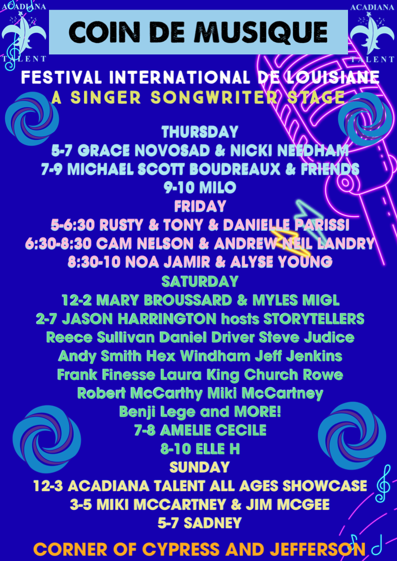Acadiana Talent presents: Various Singer/Songwriters at the corner of Jefferson and Cypress in front of Jim Deggy's Brick Oven Pizza & Brewery and across the street from Reve Coffee!